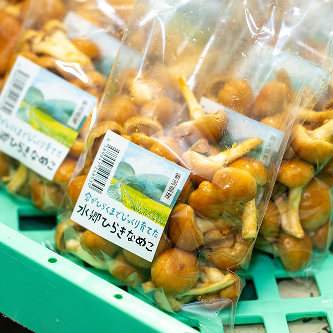 なめこと言ってもサイズも色々。500円玉くらいの大きいものから、米粒くらいの小さいものまで様々な大きさです。どれがいいかはお好みで。