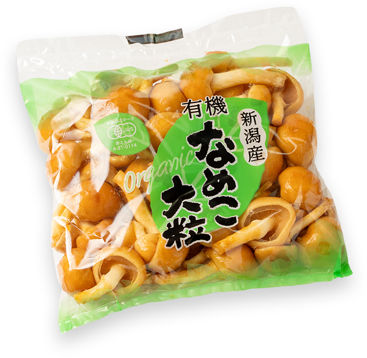 あまり見かけない大粒のなめこです。なめこの食感を楽しみたい方におすすめ。お味噌汁にしても存在感があります。希少なので、見かけたらぜひお試しください。